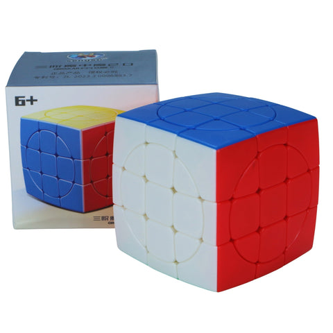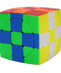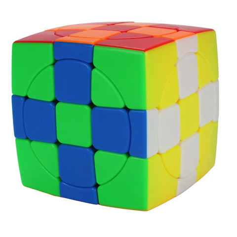 The pillowed ShengShou Crazy Circular 3x3 V2 has rings on each face that do not rotate with the corresponding face. This creates intriguing scenarios that are unusual for a 3x3 screen. The V2 adds even more complexity with nine extra pieces in each ring.