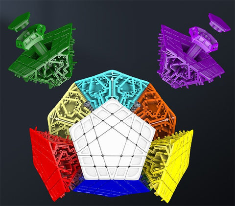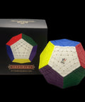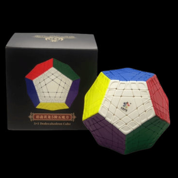 The 5x5x5 YuXin Huanglong Gigaminx Dodecahedron is the mythical 12x12x5 dodecahedron-shaped 3D puzzle. It is a modification of the famous Megaminx puzzle raised to the second power, but with 20 more pieces on each side.