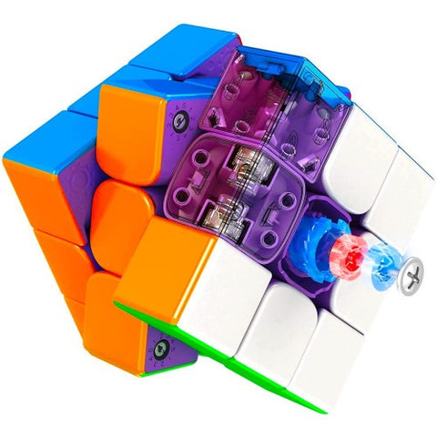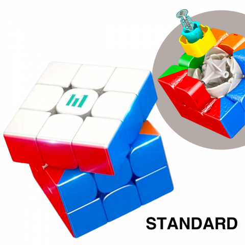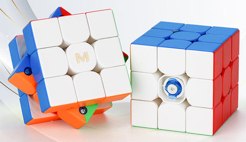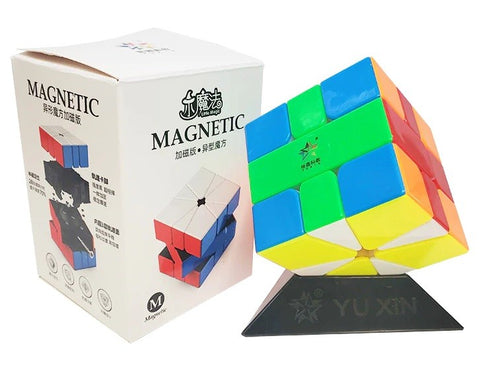 Magnetic cubes are regular speed cubes with small magnets installed inside each corner and edge piece which attracts the corresponding piece when a turn is completed and the magnetised corner and edge come together. The magnets are a subtle addition and adds stability to a fast cube and prevents over-shooting a turn. Magnets affects the feel and speed of a cube and in recent times have become most customers requested cube. Generally the magnets are glued in place, however some of the premium brand speed cubes have visible magnets or interchangeable magnetic cylinders.