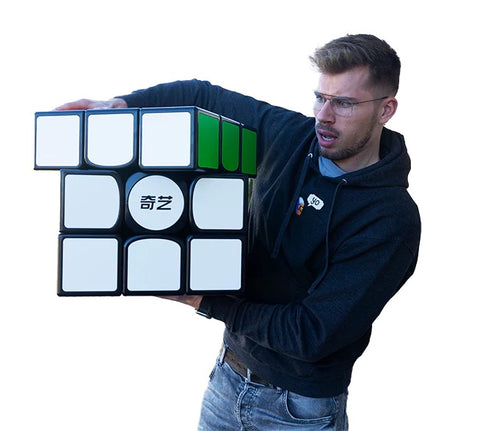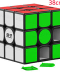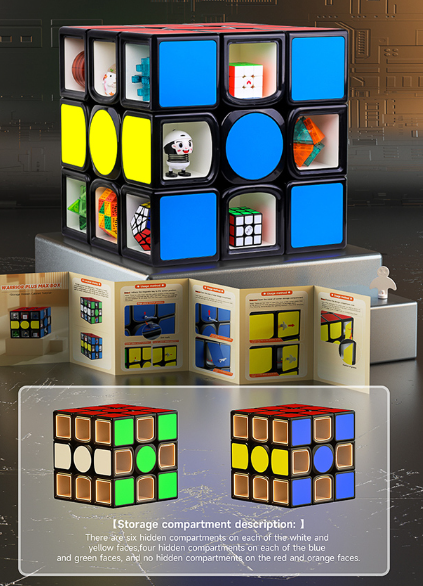 The QiYi Warrior Plus Max 3x3 BOX (38cm) is a massive 3x3 with a secret. Using the magnetic openers that come with it, you can open some pieces to reveal secret compartments where you can store anything!