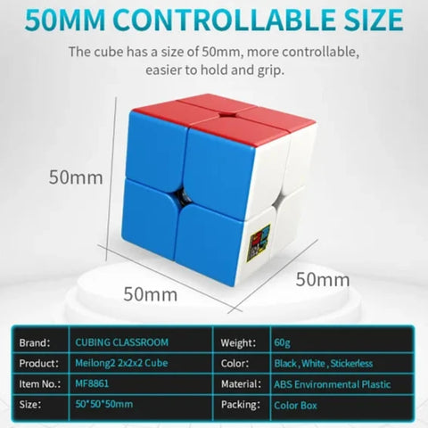 The 2x2x2 MFJS Meilong Stickerless is a new budget friendly 2x2 from MoFang JiaoShi. This puzzle features vibrant stickerless bright shades, quick turning right out of the box, and a light, airy feeling when turning.