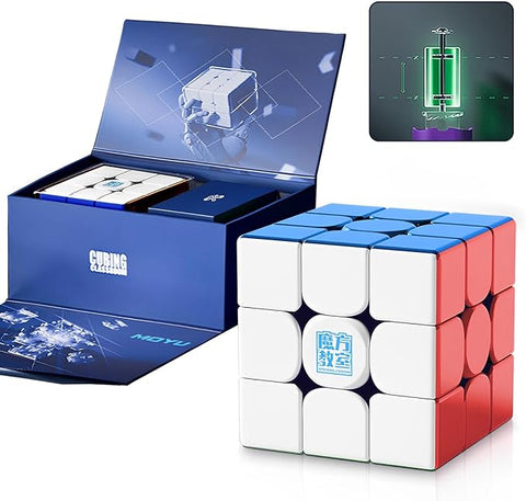 The 3x3 Moyu Super RS3M V2 Ball Core UV Coated Cube launched in 2023 is truly revolutionary. With a new speed cube positioning system, magnets are embedded in both the ball shaft and the corner block. This brings the speedcuber extreme precise control in the turning of cube layers.