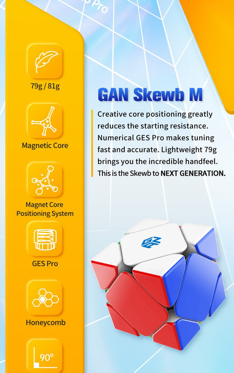The GAN Skewb Magnetic Stickerless is the first skewb to have adjustable tensions and spring compression! This Skewb features a lot of GAN's innovative features that put them on the map such as their GES tensioning system and the new Core/Corner Magnet system.